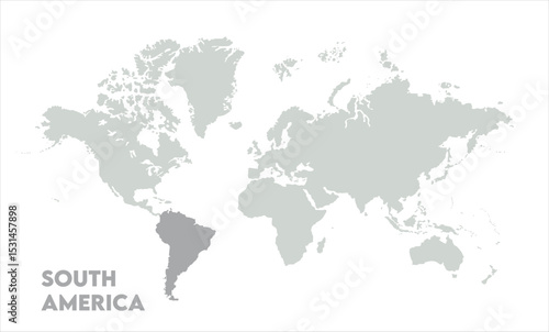 Vector world map with South America-12, Map of South America, highlighted on the world map, South America on the world map, Satellite view, South America's location on the globe.
