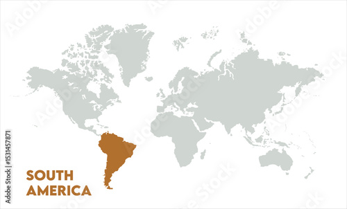 Vector world map with South America-13, Map of South America, highlighted on the world map, South America on the world map, Satellite view, South America's location on the globe.