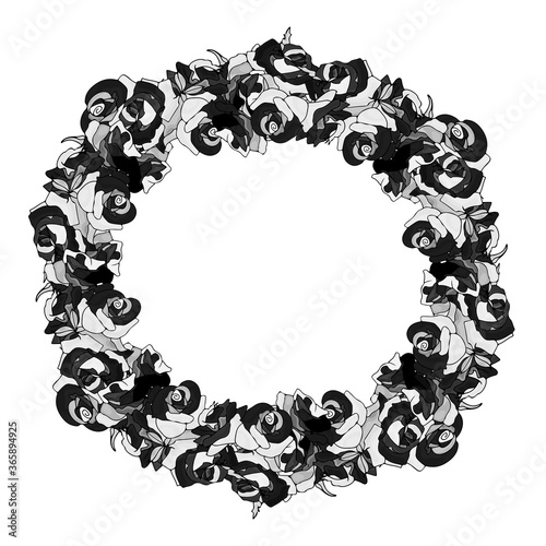 Vector wreath on a white background. Design for wedding, birthday, valentines day and other romantic design. Monochrome roses.