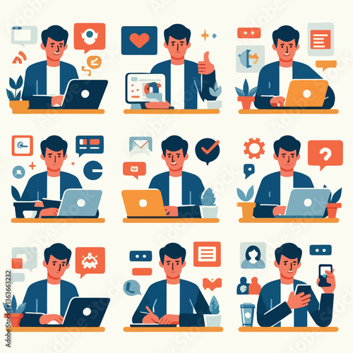 vector young man playing laptop