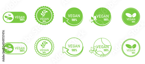 Vegan 100% Certified Labels and Icons Set. Plant-Based, Organic, Eco-Friendly Emblems