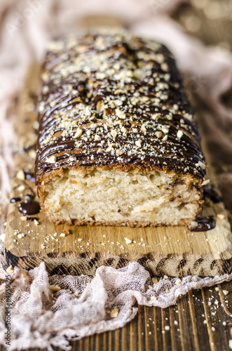 vegan apple cake with nuts and chocolate