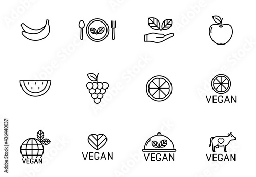 vegan outline vector icons isolated on white background. vegan healthy food line icon set for web and ui design, mobile apps and print products