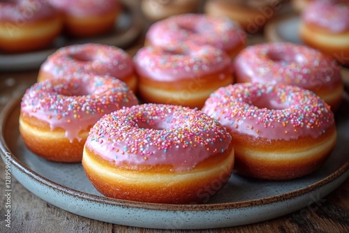 Vegan treats: mini donuts with colored glaze on eco-plates.