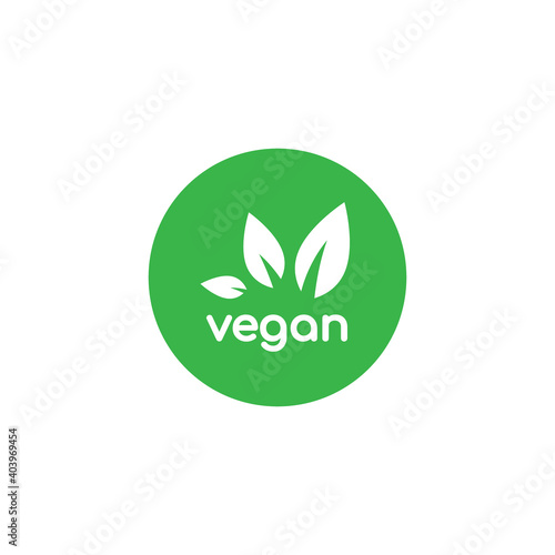 Vegan, veggie product label. Green leaves veggie icon. Healthy, eco, organic, vegetal, raw food logo.