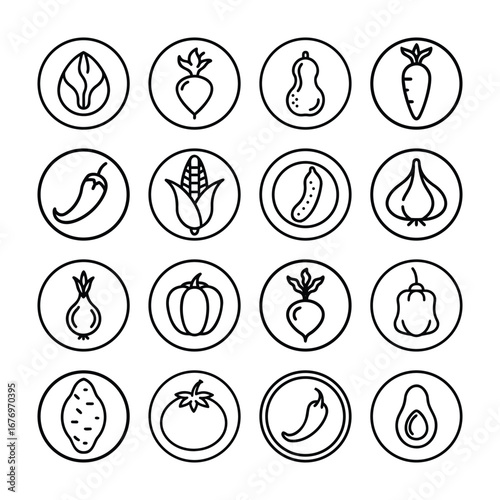 Vegetable and Summer Food Vector Icons in Minimal Line Style.