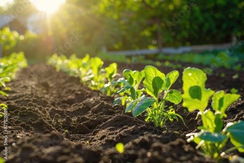 Vegetable Garden. Bright and Colorful Organic Garden in the Sunlight