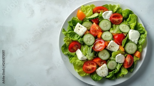 Vegetable salad with cheese. Healthy Eating. Tomato with spices, oil and cheese.