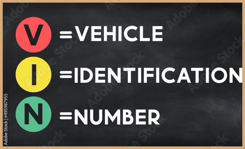 Vehicle identification number - VIN acronym written on chalkboard, business acronyms.