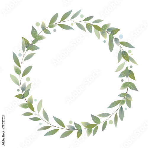 Vektorgrafik mit einem Kranz aus Blättern. Freier Platz für Text. Vorlage für Einladungen, Grußkarten, Social Media Posts und Werbung.