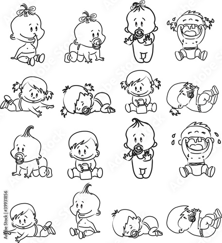 Векторные иллюстрации черно-белых мальчиков и девочек-младенцев
