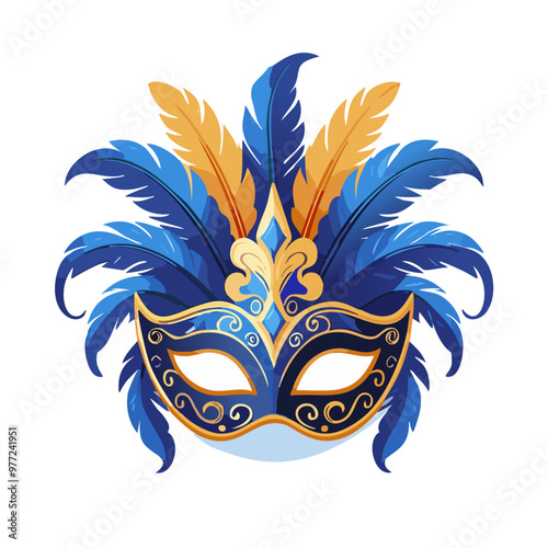 Venetian mask with feathers vector art illustration design