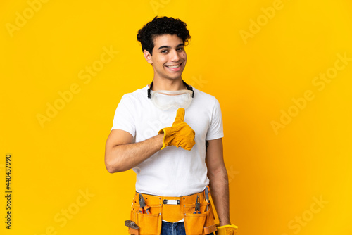 Venezuelan electrician man isolated on yellow background giving a thumbs up gesture
