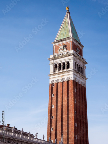 VENICE, ITALY, NOV 1st 2018: Saint Mark's or San Marco Square or Piazza and Bell or observation tower. Beautiful perspective vertical view. Day, Summer.