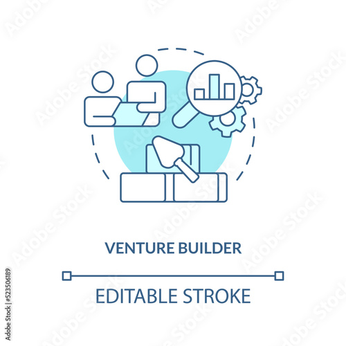 Venture builder turquoise concept icon. Startup support type abstract idea thin line illustration. Building business. Isolated outline drawing. Editable stroke. Arial, Myriad Pro-Bold fonts used