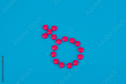 Venus mirror gender symbol made of pills or tablets. Medicine concept for woman. Women's health menopause, PMS, menstruation or estrogen.