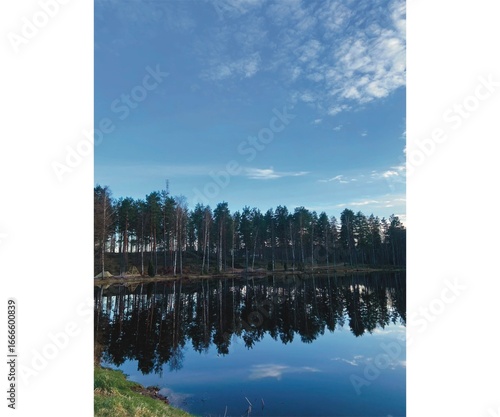 Verdant trees cast their mirrored forms upon the lake, blending earth and water.