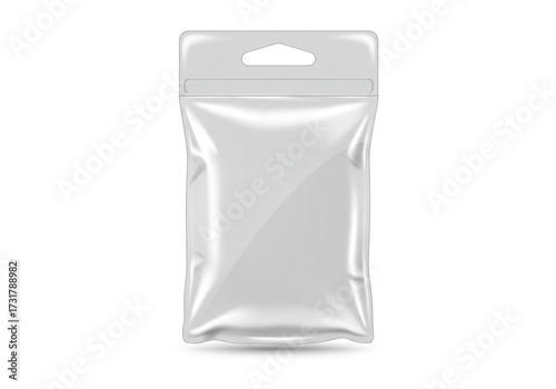 Versatile clear plastic pouch with hang tab for retail display, offering secure and modern product packaging solutions for small items.