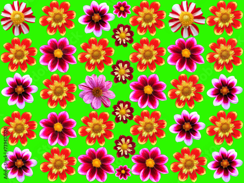 Verschiedene Dahlienblüten auf grünem Hintergrund