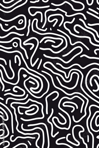 Vertical Abstract doodle squiggly lines seamless pattern. Black and white childish scribble repeating background.