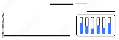 Vertical bar graph with varying blue levels in rectangular box, clean design lines. Ideal for analytics, reporting, finance, data science, education, business dashboards, simple landing page
