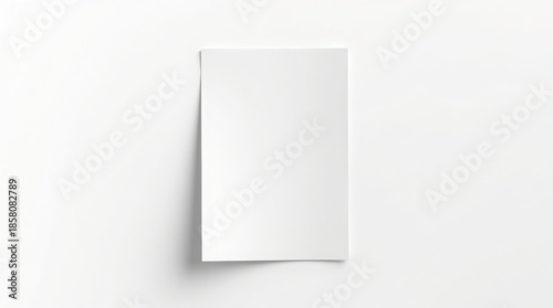 Vertical Blank White Paper Sheet Mockup with Soft Drop Shadow on Plain White Background for Design, Mockup , Valentine's Day Flat Lay