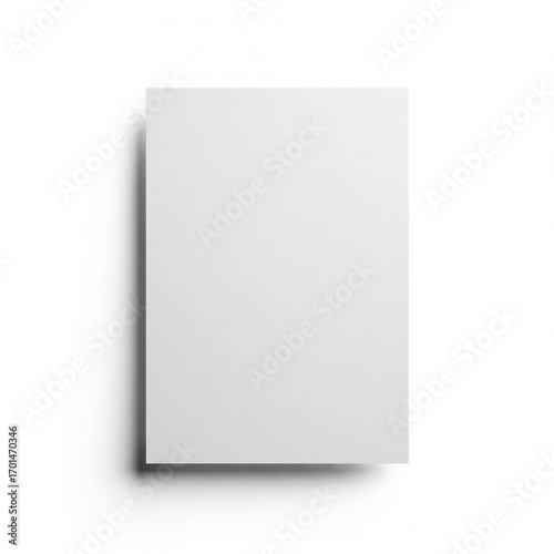 Vertical blank white paper sheet with a subtle shadow, isolated on a plain background, creating a clean and simple mockup template