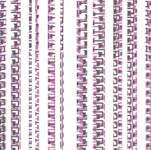 Vertical colored patterns or small pieces form an overall geometric cut background.