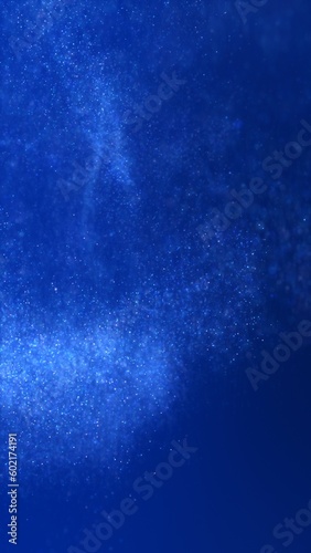Vertical festive Christmas Holidays and seasonal winter and New Year stars particle background. Blue 3D illustration GUI phone wallpaper. Swirling underwater motion of glamorous elegant glowing snow.