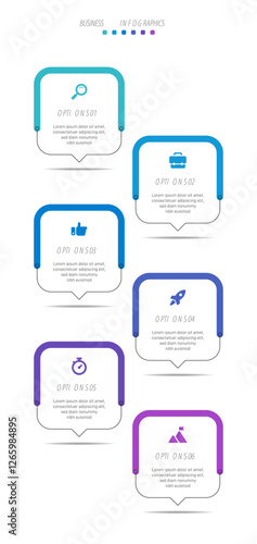 Vertical progress bar featuring 6 arrow-shaped elements, symbolizing the six stages of business strategy and progression. Clean timeline infographic design template. Vector for mobile presentation.