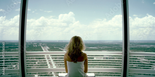 Vertical shot of Orlando USA with Beautiful strong young woman Generative AI