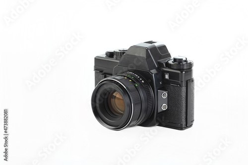 Very rare old 35 mm SLR film camera on white background.