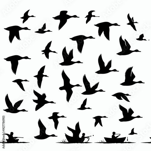 very simple flat and single minimalist Shooting Duck Game Silhouettes in black on a white background