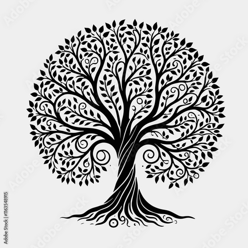 very simple Tree of Life silhouette in black color on a white background