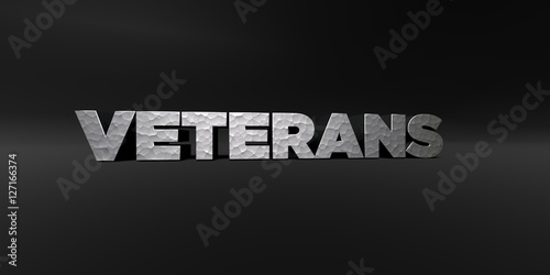 VETERANS - hammered metal finish text on black studio - 3D rendered royalty free stock photo. This image can be used for an online website banner ad or a print postcard.
