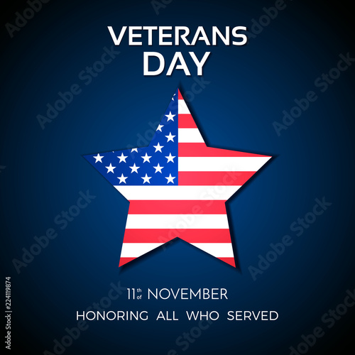 Veterans Day. 11th of November. Honoring all who served. Usa flag on background.