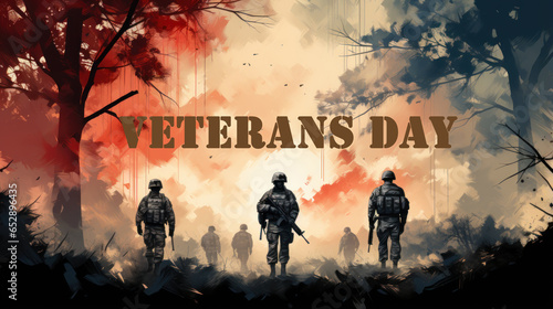 Veterans day background with soldiers and text. 3D illustration.