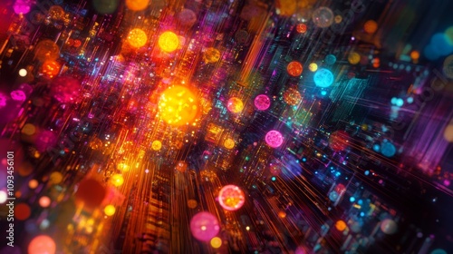 Vibrant 3D Abstract Light and Pattern Art - Colorful, glowing spheres, dynamic patterns, abstract art, digital, energy. A mesmerizing visual experience.