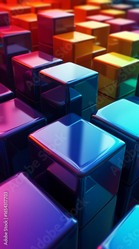 Vibrant 3D colorful cubes forming an abstract geometric background, perfect for modern, digital, and creative design projects.