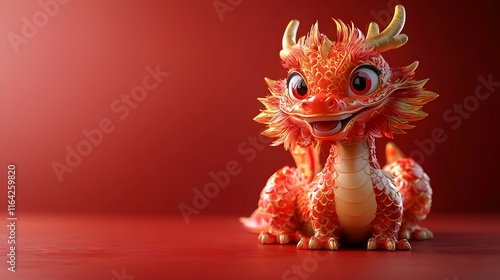 Vibrant 3D Cute Fantasy Creature on Bright Red Background with Copyspace