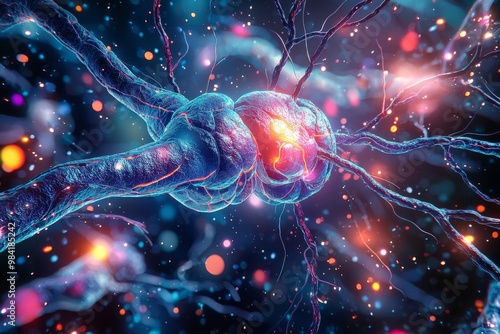 Vibrant 3D Digital Nerve Cells - Detailed High-Angle View with Intricate Colors