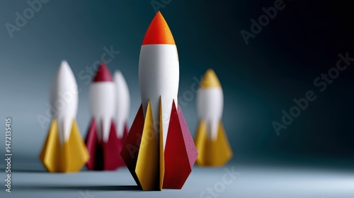 Vibrant 3D Illustration of Triumphant Rockets in Dynamic Design and Color Scheme