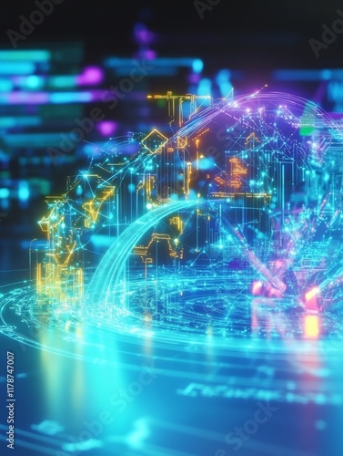 Vibrant 3D Render: Futuristic Network Globally Connecting. AI Generated