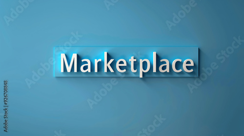 Vibrant 3d rendering of the word marketplace on a blue background, symbolizing business and commerce in the digital era. Perfect for retail, consumerism, and technology projects