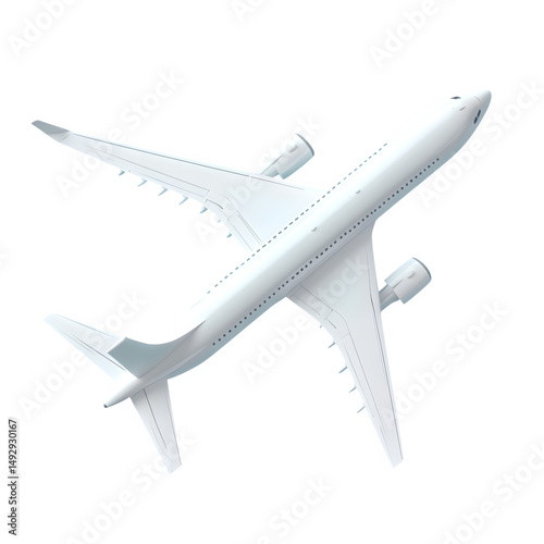 Vibrant 3D white airplane flying icon, isolated PNG, plastic style