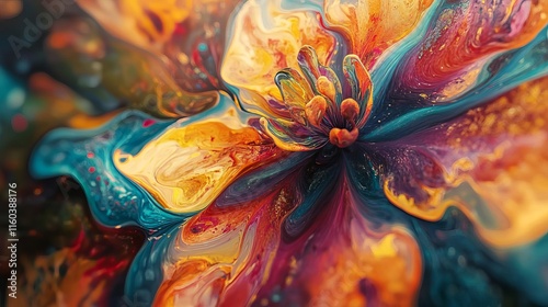 Vibrant abstract art featuring swirling colors and fluid textures resembling a blooming flower.