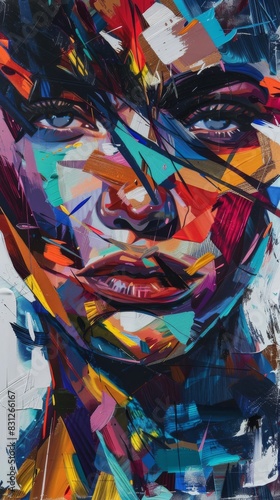 Vibrant abstract artwork featuring a stylized face with expressive brushstrokes