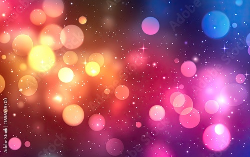 Vibrant abstract background showcasing a mix of warm and cool colors, featuring bokeh and glittering highlights.