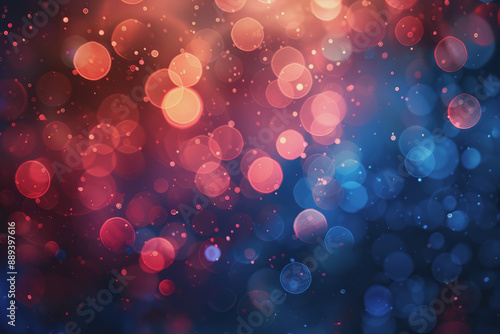 Vibrant abstract background with a dynamic mix of red and blue bokeh lights.