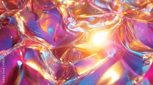 Vibrant Abstract Background with Colorful Light Reflections, Fluid Shapes, and Glossy Textures Creating a Dreamy and Ethereal Atmosphere